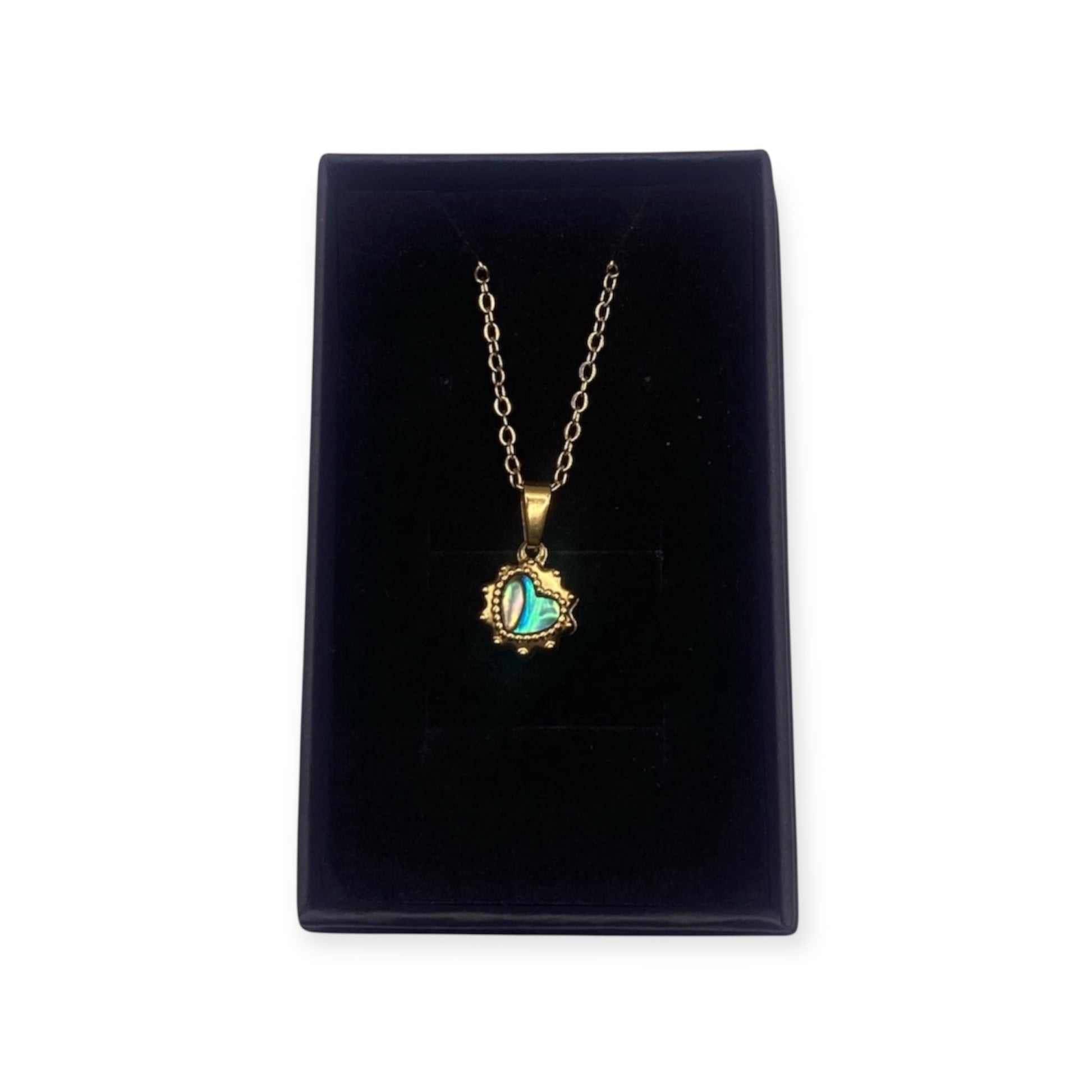 ADJUSTABLE VIBRANT AOTEROA PĀUA NECKLACE | HEART 18K GOLD PLATED