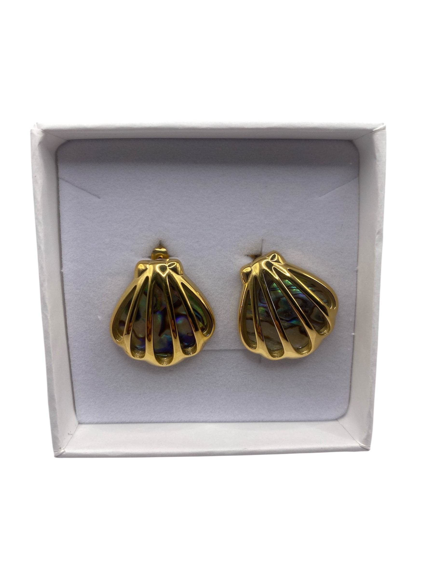 Details for our Vibrant Aotearoa Pāua Earrings Seashell Design 18K Gold Plated